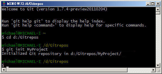 - 輸入以下命令,以建立一個空的版本庫('$' 符號是提示字元,不用輸入):